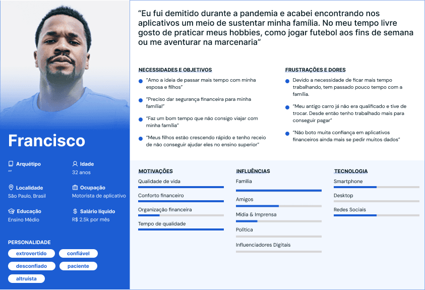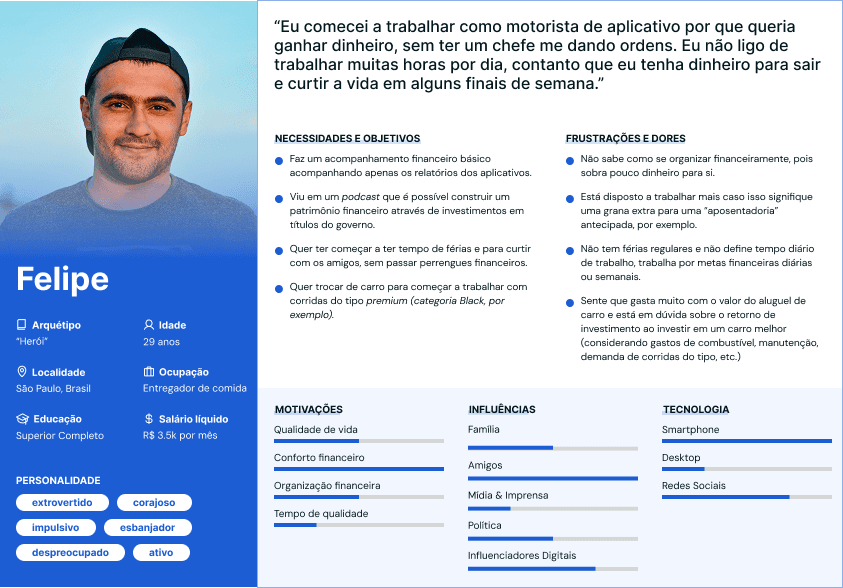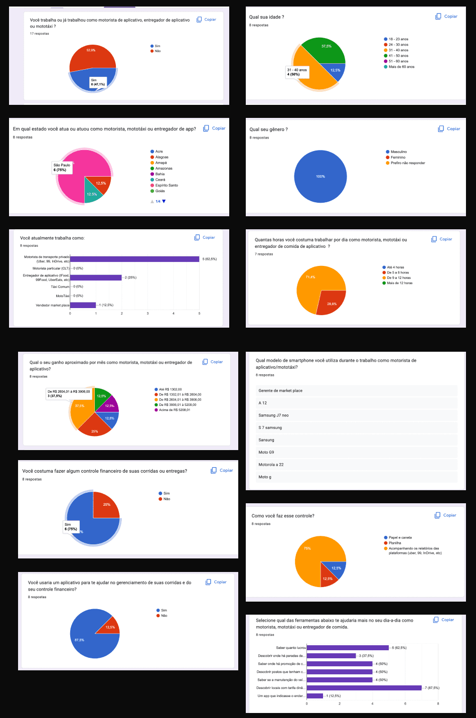 To achieve the objective, the research needed to identify the project's target audience (motorcycle taxi drivers and app drivers and/or food delivery drivers) and map the users' real needs (financial management, security, vehicle maintenance, etc.).