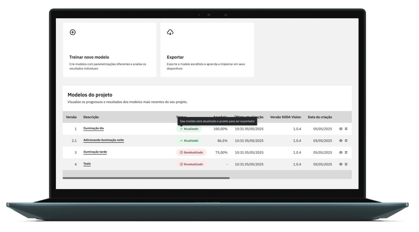SODA Vision is a tool developed within Ambev Tech for use inside factories. It combines Computer Vision, Machine Learning, and Deep Learning to automate processes and collect data through visual inspection. This is achieved simply by using a camera and a computer, which send the data to be trained using AI on our platform.
